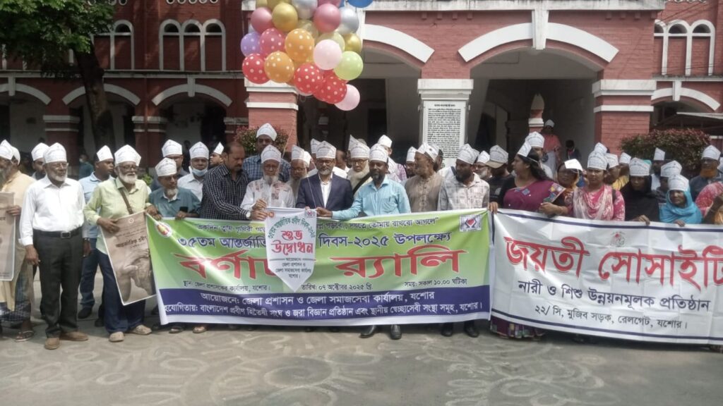 ৩৫তম আন্তর্জাতিক প্রবীণ দিবস- উপলক্ষে যশোরে বর্ণাঢ্য র্যালি ও আলোচনা সভা অনুষ্ঠিত হয়েছে। সোমবার (৭ অক্টোবর) সকালে জেলা প্রশাসন ও জেলা সমাজসেবা কার্যালয়ের আয়োজনে এ কর্মসূচি পালিত হয়।
