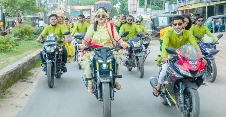 ডেক্স রিপোর্ট: যশোরের মেয়ে ফারহানা গত ১৩ আগস্ট গায়ে হলুদ ও ১৪ আগস্ট বিয়ের অনুষ্ঠান পালনে এমন আয়োজন করেন। গায়ে হলুদে শহরজুড়ে বন্ধু-বান্ধব ও সঙ্গিদের নিয়ে বাইক র্যালি করেন তিনি।