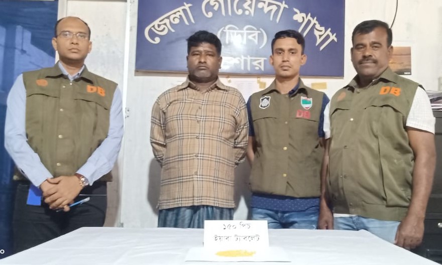 স্টাফ রিপোর্টার: যশোরে ডিবি পুলিশের অভিযানে ১৫০ পিস ইয়াবা ট্যাবলেট সহ এক মাদক ব্যব সায়ীকে গ্রেফতার করেছে। ডিবি’র এক প্রেস বার্তায় জানা গেছে,গতকাল সন্ধ্যায় যশোর নিউ মার্কেট খাজুরা বাসস্ট্যান্ড এলাকায় অবস্থান অভিযান চালিয়ে যশোর কোতয়ালী মডেল থানাধীন ৭নং সেক্টর প্লট-জি-১০ নতুন উপ-শহরস্থ মোঃ রেজাউল আমিন @ মিল্টন, পিতা-মৃত রুহুল আমিন এর বসতবাড়ীর উঠান হইতে মোঃ রেজাউল আমিন @ মিল্টন (৫০), পিতা-মৃত রুহুল আমিন, সাং-৭নং সেক্টর, জি-১০, নতুন উপ-শহর, থানা-কোতয়ালী মডেল, জেলা-যশোর গ্রেফতার পূর্বক তার শার্টের পকেট হইতে ১৫০(একশত পঞ্চাশ) পিচ ইয়াবা ট্যাবলেট উদ্ধার করা হয়। যার মূল্য অনুমান ৪৫ হাজার টাকা । এঘটনায় কোতয়ালী মডেল থানার মামলা হয়। মামলা নং-১০৯, তাং-১৮/০২/২০২১।
