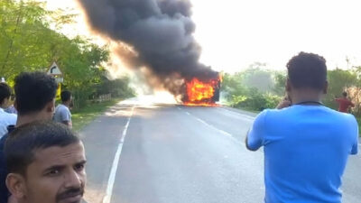 জানা গেছে, শনিবার বিকেলে যশোরের গোপালপুর গেটের কাছে খুলনাগামী হানিফ পরিবহন ও খুলনা থেকে আসা মোটরসাইকেলের মুখোমুখি সংঘর্ষ হয়। এ সময় মোটরসাইকেলটি বাসের নিচে আটকে যায়। বাসের চালক মোটরসাইকেলটি টেনে-হিঁচড়ে খুলনার দিকে প্রায় আধা কিলোমিটার দূরে চাউলিয়া নামের স্থানে আসলে বাস ও মোটরসাইকেলে আগুন ধরে যায়।