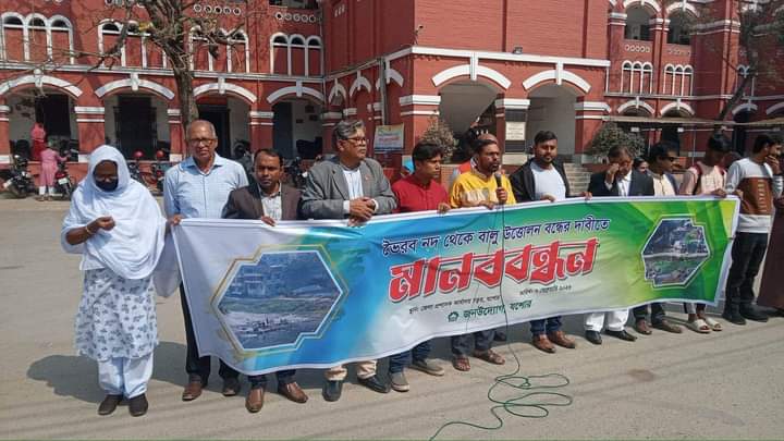 যশোরে ভৈরব নদ থেকে অবৈধ বালু উত্তোলনের প্রতিবাদে মানববন্ধন