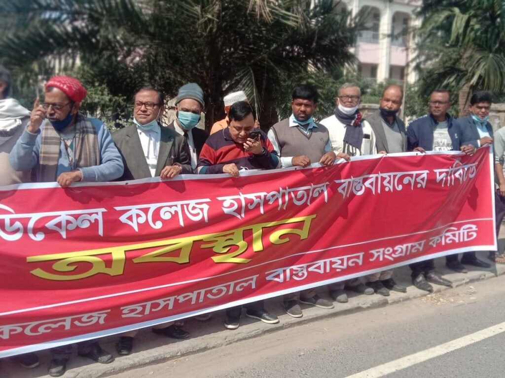 আর তাই আজ(১৬ ফেব্রুয়ারী)বুধবার বেলা বারটায় যশোরের মানুষের দীর্ঘদিনের প্রাণের দাবি ও চাওয়া যশোর মেডিকেল কলেজ হাসপাতাল বাস্তবায়নের লক্ষ্যে প্রেসক্লাবের সামনে মানববন্ধন অনুষ্ঠিত হয়।