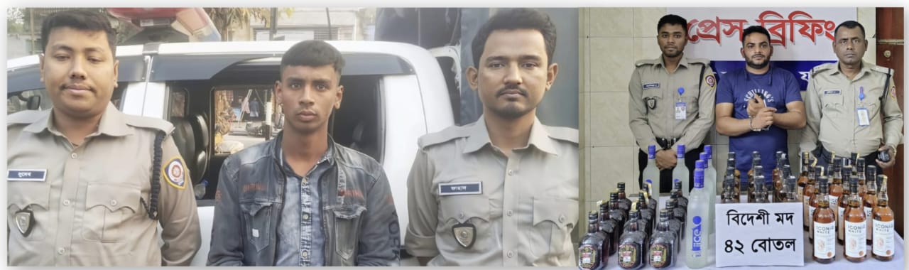 মাদকদ্রব্য নিয়ন্ত্রণ অধিদপ্তর যশোরের সদস্যরা এবার যাত্রীবাহী বাস তল্লাশি করে আড়াই লাখ টাকা মূল্যের ৪২ বোতল বিদেশী মদ জব্দ করেছে। অবৈধভাবে ওই মদ বহনের অভিযোগে আসিফ হাসান (২৪) নামে এক যুবককে আটক করা হয়েছে। আটক আসিফ যশোর শহরের ঘোপ জেল রোড এলাকার জিয়ার শেখের ছেলে।