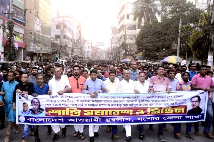 বিএনপি-জামায়াতের সন্ত্রাস ও নৈরাজ্যের বিরুদ্ধে যশোরে শান্তি মিছিল ও সমাবেশ অনুষ্ঠিত হয়েছে।