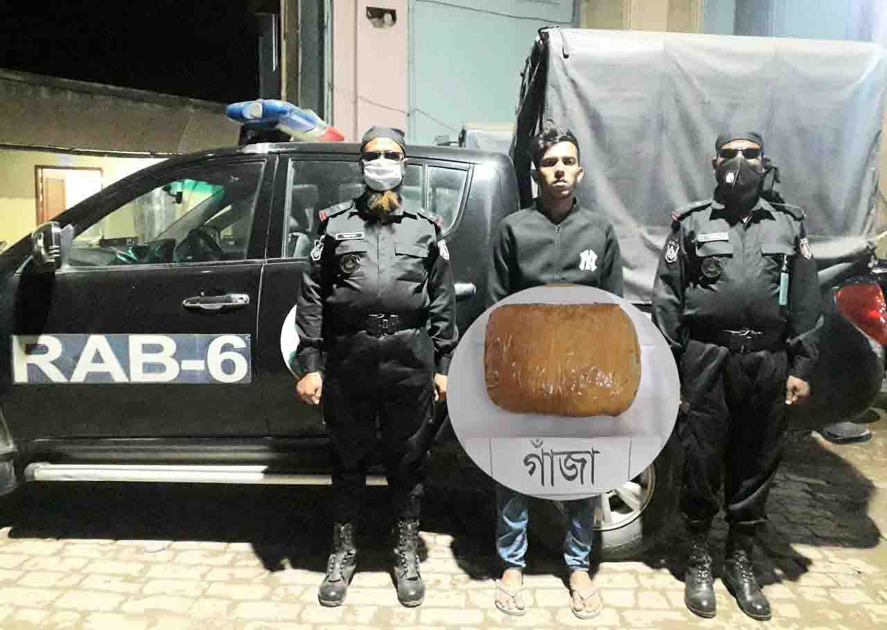 যশোর র্যাবের অভিযানে মাদকদ্রব্য গাঁজাসহ এক মাদক ব্যবসায়ী গ্রেফতার হয়েছে শনিবার ইং ২৮/১১/২০২০ তারিখ ১৬.৩০ ঘটিকার সময় র্যাব-৬, সিপিসি-৩, যশোর ক্যাম্পের ভারপ্রাপ্ত কোম্পানি কমান্ডার লেঃ এম সারোয়ার হুসাইন, (এক্স), বিএন এর নেতৃত্বে একটি আভিযানিক দল গোপন সংবাদের ভিত্তিতে যশোর জেলার কোতয়ালী মডেল থানাধীন ০১ নং ওয়ার্ড আবাদ কচুয়া খালপাড়া সাকিনস্থ মোঃ শাকির হাসান সিকদার (৫২) এর নির্মাণাধীন দ্বিতীয় তলা পাকা বিল্ডিং এর দি¦তীয় তলায় রাখা পুরাতন কাঠের পালার মধ্যে অভিযান পরিচালনা করে আসামী মোঃ নাদিম মাহমুদ (২৪), পিতা-মোঃ শাকির হাসান সিকদার, সাং- ১নং ওয়ার্ড আবাদ কচুয়া খালপাড়া, থানা-কোতয়ালী মডেল, জেলা- যশোর’কে (ক) ০১ (এক) কেজি গাঁজা সহ গ্রেফতার করে। ধৃত আসামীকে আরো জিজ্ঞাসাবাদে পলাতক আসামী ১। মোঃ শাকির হাসান সিকদার(৫২), পিতা- মৃত আবছার আলী সিকদার, ২। নাদিরা পারভিন(৪৫), স্বামী- মোঃ শাকির হাসান সিকদার উভয় সাং- ১নং ওয়ার্ড আবাদ কচুয়া খালপাড়া, থানা-কোতয়ালী মডেল, জেলা- যশোর দ্বয় এর নাম ঠিকানা প্রকাশ সহ ঘটনার সাথে জড়িত থাকার কথা স্বীকার করে। ধৃত আসামীকে যশোর জেলার কোতয়ালী মডেল থানায় হস্তান্তর করতঃ ২০১৮ সনের মাদক দ্রব্য নিয়ন্ত্রন আইনের ৩৬ (১) এর সারনী ক্রমিক ১৯ (ক)/৪১ ধারা মোতাবেক ধারায় মামলা প্রক্রিয়াধীন।