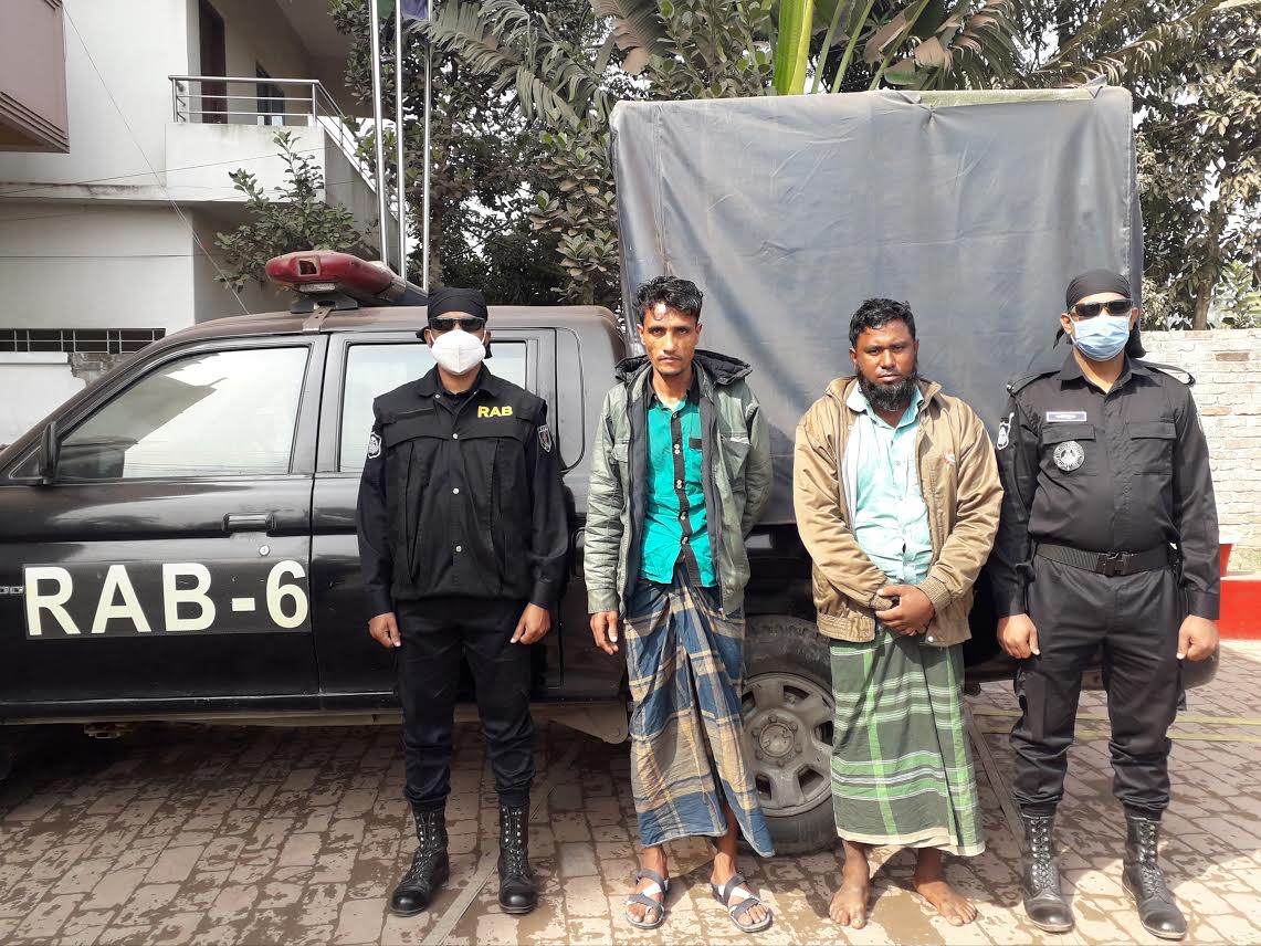 প্রেস বিজ্ঞপ্তি : যশোর র্যাবের অভিযানে ধর্ষণ মামলার দুই পলাতক আসামী গ্রেফতার হয়েছে সোম বার ইং ২৩/১১/২০ তারিখ- সময় রাত অনুমান ২৩.২৫ ঘটিকায় গোপন সংবাদের ভিত্তিতে জানতে পেরে, মাগুরা জেলার সদর থানাধীন বাটিকাবাড়ী বাজারের মোড়ে মাগুরা সদর থানার ধর্ষণ মামলার সন্দেহ ভাজন পলাতক আসামী ০১। মোঃ জাহিদুল ইসলাম (৩৪), পিতা- মোঃ আশরাফ হোসেন, সাং- চংপুর ২। মোঃ আসাদ মোল্লা (২৯), পিতা- মৃত গোলাম রসুল মোল্লা, সাং- চাপড়া, উভয় থানা- মাগুরা সদর, জেলা- মাগুরাদ্বয় অবস্থান করিতেছে। বিষয়টি উর্দ্ধতন কর্তৃপক্ষকে অবহিত করে এবং তাহার নির্দেশে ইং ২৩/১১/২০ খ্রিঃ তারিখ ২৩.৫০ ঘটিকার সময় উক্ত স্থানে হাজির হলে র্যাবের উপস্থিতি টের পেয়ে পালানোর চেষ্টাকালে সংগীয় ফোর্সসহ উল্লেখিত সন্দেহভাজন ধর্ষন মামলার আসামীদ্বয়’কে হাতে নাতে গ্রেফতারকরে। পরবর্তীতে জিজ্ঞাসাবাদে তাহারা উপরোক্ত নাম ঠিকানা প্রকাশ করে এবং তাহারা ধর্ষণের সাথে জড়িতছিল বলে স্বীকার করে। গ্রেফতার কৃত আসামীদ্বয়’কে পরবর্তী প্রয়োজনীয় ব্যবস্থা গ্রহণের জন্য মাগুরা জেলা সদর থানায় হস্তান্তর করা হয় ।