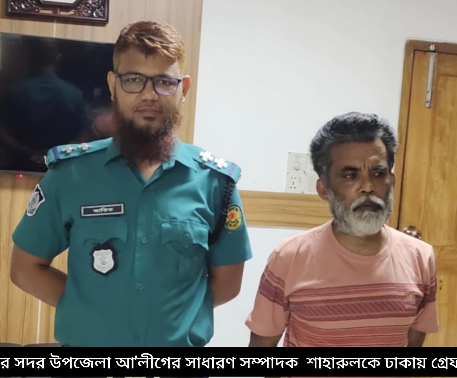 যশোর সদর উপজেলা আওয়ামী লীগের সাধারণ সম্পাদক ও আরবপুর ইউনিয়নের সাবেক চেয়ারম্যান শাহারুল ইসলামকে ধরে পুলিশে সোপর্দ করেছেন জনতা। বৃহস্পতিবার (৩০ অক্টোবর) রাত সাড়ে ৯টার দিকে ঢাকা শিশু মেলা থেকে তাকে আটক করে স্থানীয় জনতা। এরপর তাকে শেরেবাংলা নগর থানার পুলিশের কাছে সোপর্দ করে তারা। বিষয়টি নিশ্চিত করেছেন থানার অফিসার ইনচার্জ (ওসি) ইমাউল হক।