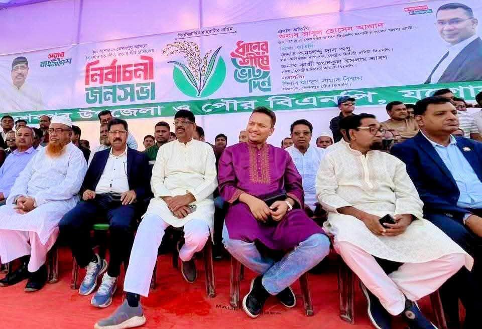 আসন্ন ত্রয়োদশ জাতীয় সংসদ নির্বাচন উপলক্ষে যশোর-৬ কেশবপুর আসনে ধানের শীষ প্রতীকের নির্বাচনী জনসভা অনুষ্ঠিত হয়েছে। সোমবার বিকেলে কেশবপুর শহরের পাবলিক ময়দানে পৌর বিএনপি’র সভাপতি সাবেক মেয়র আব্দুল সামাদ বিশ্বাসের সভাপতিত্বে অনুষ্ঠিত জনসভায় প্রধান অতিথি হিসেবে বক্তব্য রাখেন যশোর-৬ (কেশবপুর) আসনে বিএনপি মনোনীত ধানের শীষ প্রতীকের প্রার্থী আলহাজ্ব আবুল হোসেন আজাদ।