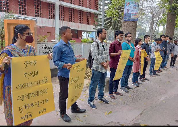 রাবি শাখা ছাত্র ইউনিয়নের সভাপতি শাকিলা খাতুন বলেন, গোদাগাড়ীতে জমিতে সেচের পানি না পাওয়ার কারণে দুই কৃষক আত্মহত্যা করেছেন। স্থানীয় এক আওয়ামী লীগ নেতার প্ররোচনায় তাঁরা আত্মহত্যা করেছেন। সেচের দায়িত্বে ছিলেন ওই আওয়ামী লীগ নেতা। তিনি ক্ষুদ্র জাতিগোষ্ঠীর মানুষের ওপর তাঁর ক্ষমতার প্রভাব খাটিয়েছেন। তাঁরা কৃষকদের জিম্মি করে মুনাফা করেন।