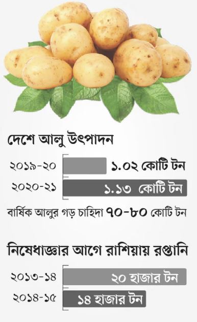 আলু রপ্তানির আগে পরীক্ষা-নিরীক্ষা এবং উৎপাদনপ্রক্রিয়া যাচাইয়ের তথ্যও তখন জানতে চায় রাশিয়া। কৃষি মন্ত্রণালয় ও বাণিজ্য মন্ত্রণালয় বাংলাদেশের উদ্বৃত্ত আলু রপ্তানির জন্য যখন রাশিয়াকে সম্ভাবনাময় বাজার হিসেবে ভাবছিল, তখনই দেশটি নিষেধাজ্ঞা দেয়।