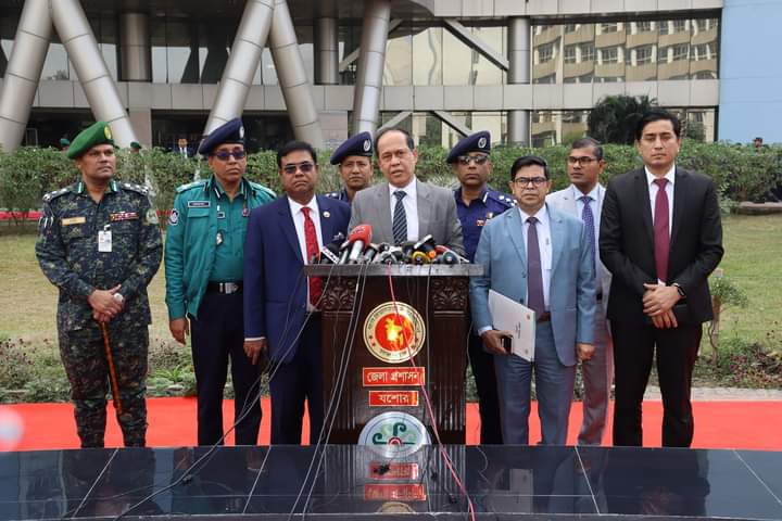 আসন্ন দ্বাদশ জাতীয় সংসদ নির্বাচন-২০২৪ উপলক্ষে আইন-শৃঙ্খলা রক্ষাকারী বাহিনীসহ মাঠ প্রশাসনের কর্মকর্তাদের নিয়ে যশোরে মতবিনিময় সভা অনুষ্ঠিত হয়।