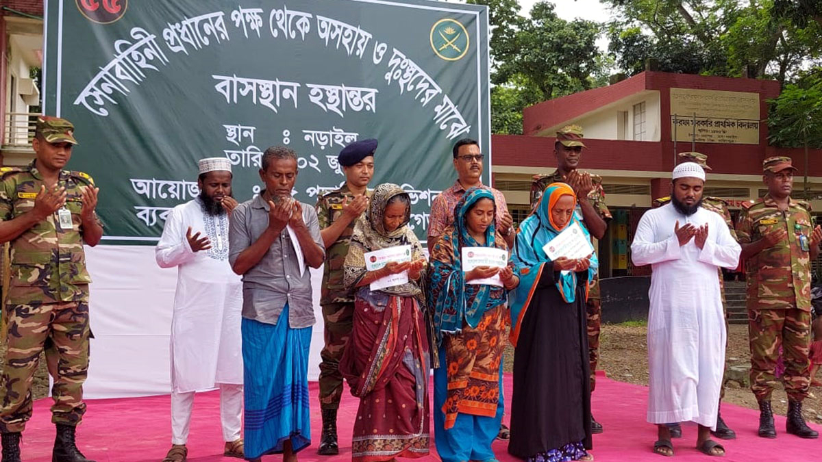 হস্তান্তর করেন নড়াইলের লোহাগড়া উপজেলার করফা স্কুল মাঠে সেনাবাহিনী