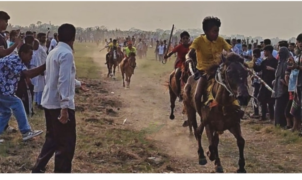 নড়াইলের লোহাগড়ায় ঘোড়দৌড় প্রতিযোগিতা দেখতে মানুষের ঢল